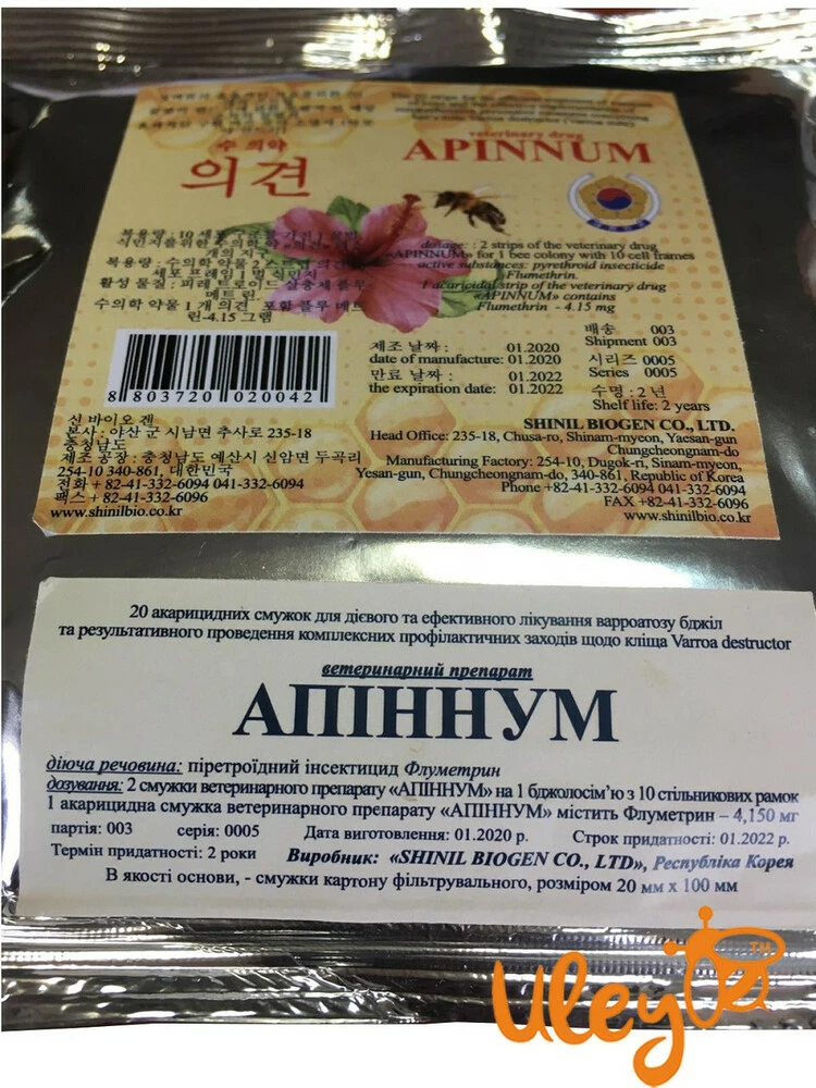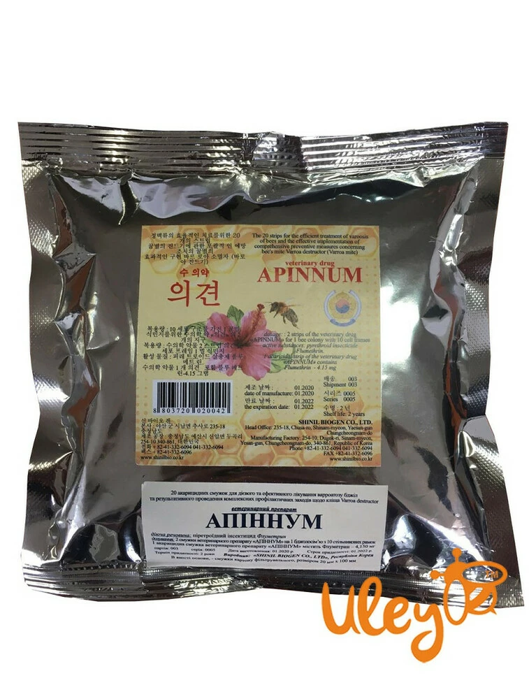 Апиннум (флуметрин), 20 СМУЖОК - призначений для лікування і профілактики вароатозу бджіл (Varroa destructor).