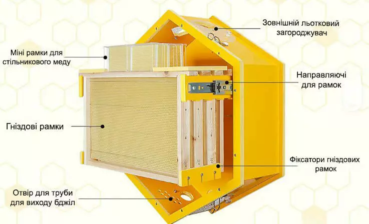 Корпус вулика з прозорими дверцятами (шестигранник)