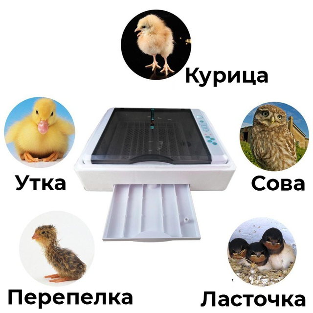 Призначений для інкубації 36 курячих, качиних, індичих, перепелиних