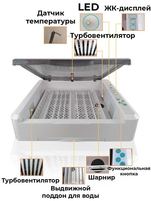 Верхня кришка напівпрозора, весь процес інкубації як на долоні.