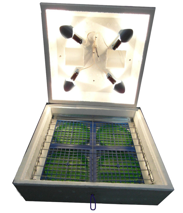 Інкубатор має 4 лампи 40 Вт і запобіжник від перегріву. |