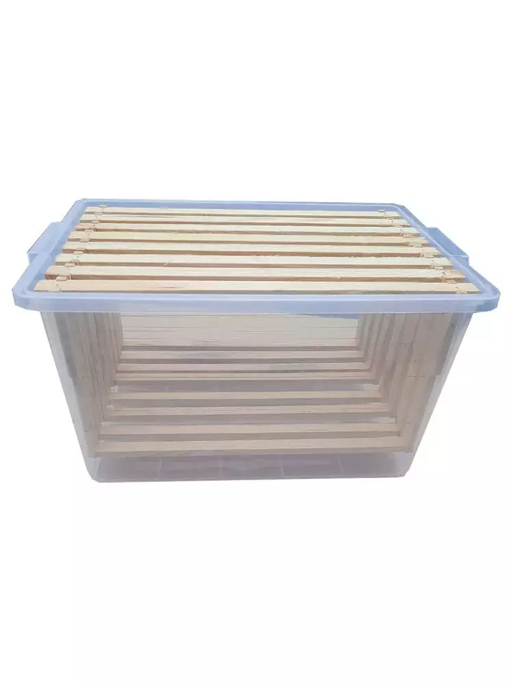 Контейнер для зберігання, транспортування та продажу медових рамок, а також може використовуватися для зручного зберігання та перенесення їжі. Контейнер виготовлений із якісного харчового пластику, абсолютно безпечного для здоров’я. Не містить шкідливих речовин. Кришка щільно закривається, додатково фіксується ручками.