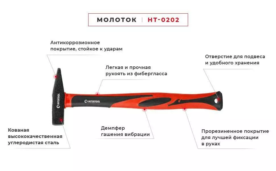 Рукоятка з отвором дозволяє зберігати молоток, підвісивши його на