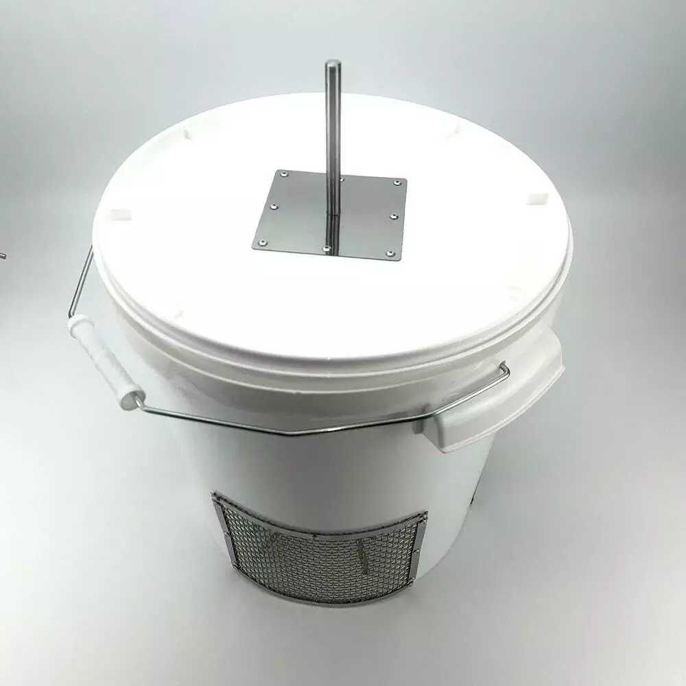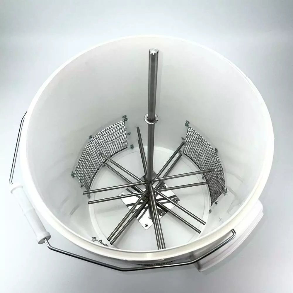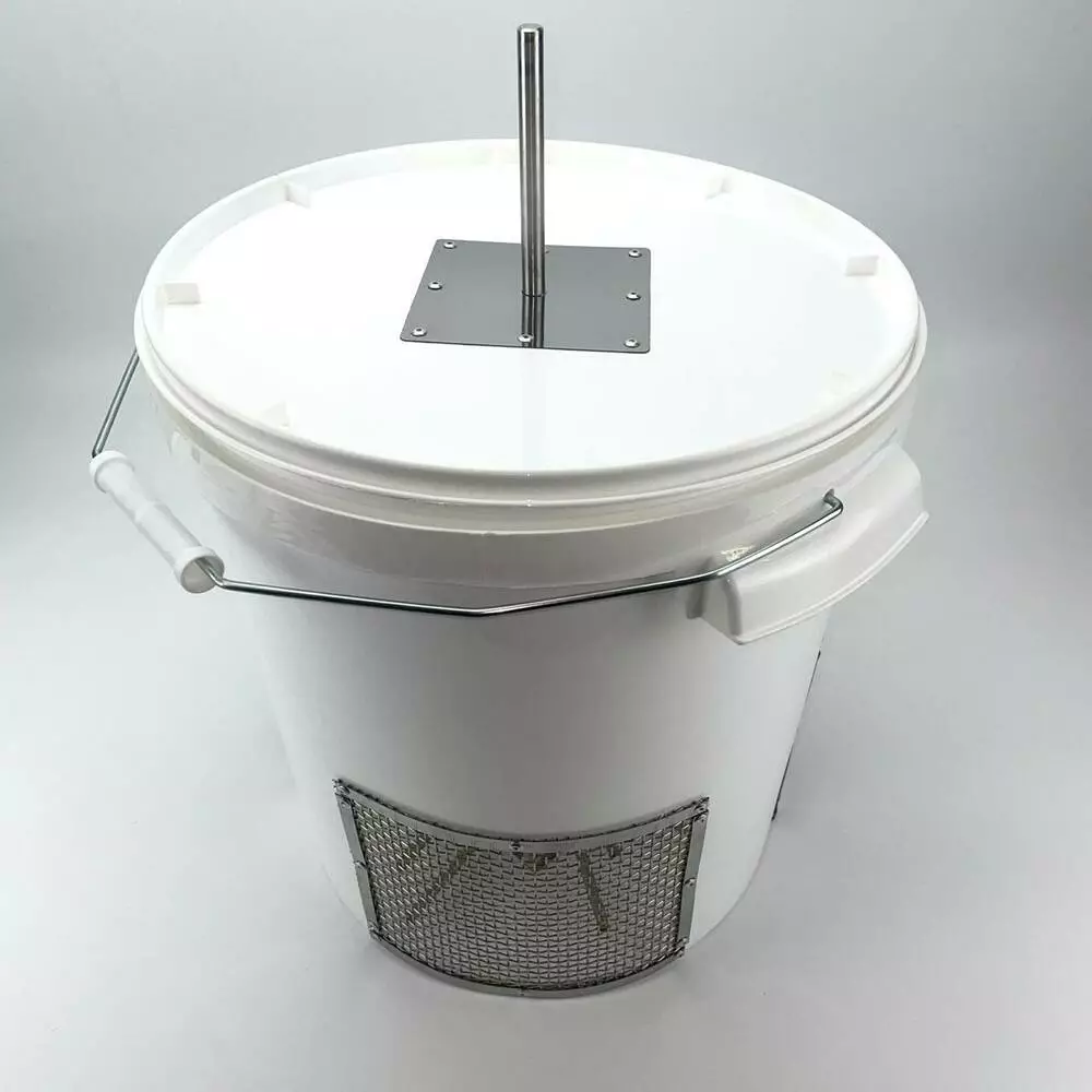 Спеціальну конструкцію виготовлено на базі пластикового відра об’ємом 20 літрів. Призначений для підключення до ручного дриля. Закладні елементи на дні відра та у кришці – з обох боків для максимальної жорсткості.