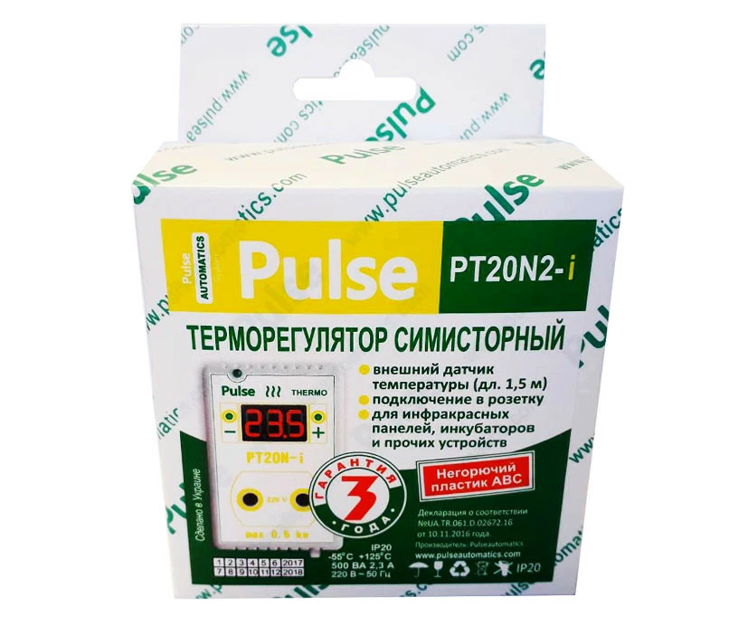 Терморегулятор PT-20 N2i (Мікропроцесорний терморегулятор однопороховий, далі — терморегулятор) застосовується в системах опалення, для керування температурою теплих підлог,басейнів, теплиць, морозильних камер, сушарок, систем обігріву вельів, системи для не замерзання водозливів, ктозаврювачів і т.ін.
