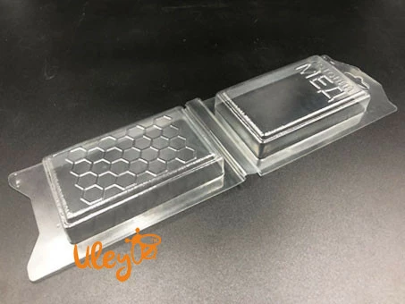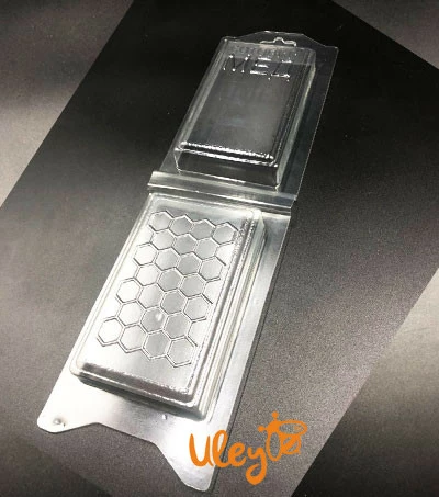 Упаковка для сотового меду повністю прозора, з однієї сторони висічені бджолині соти, з іншого боку напис «Стільниковий мед» і прозоре вікно розміром 57х65мм. Так покупець має можливість бачити стільниковий мед. І немає необхідності відкривати кожну коробку і показувати її вміст покупцям. Так само на це вікно можна приклеїти етикетку з координатами виробника або продавця.